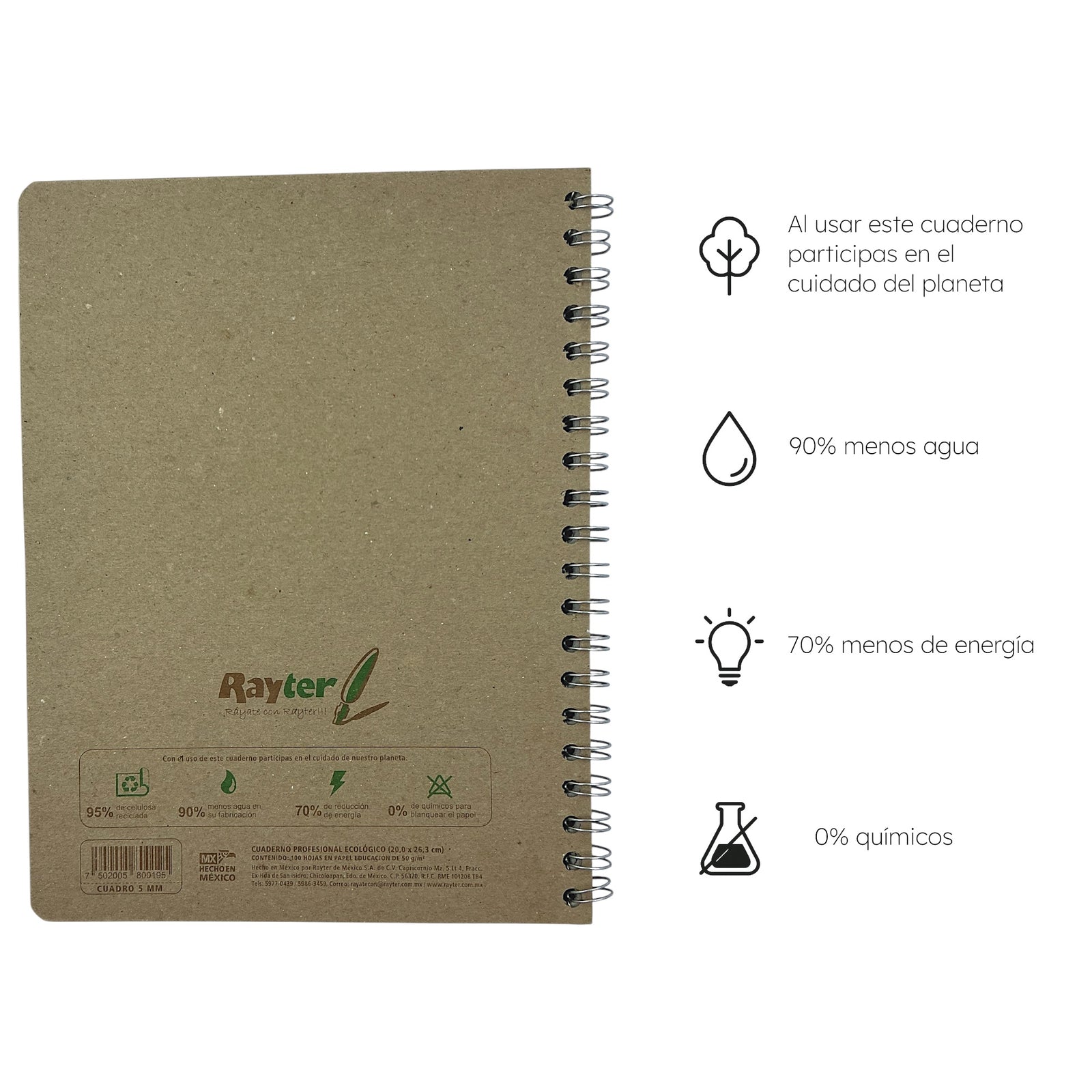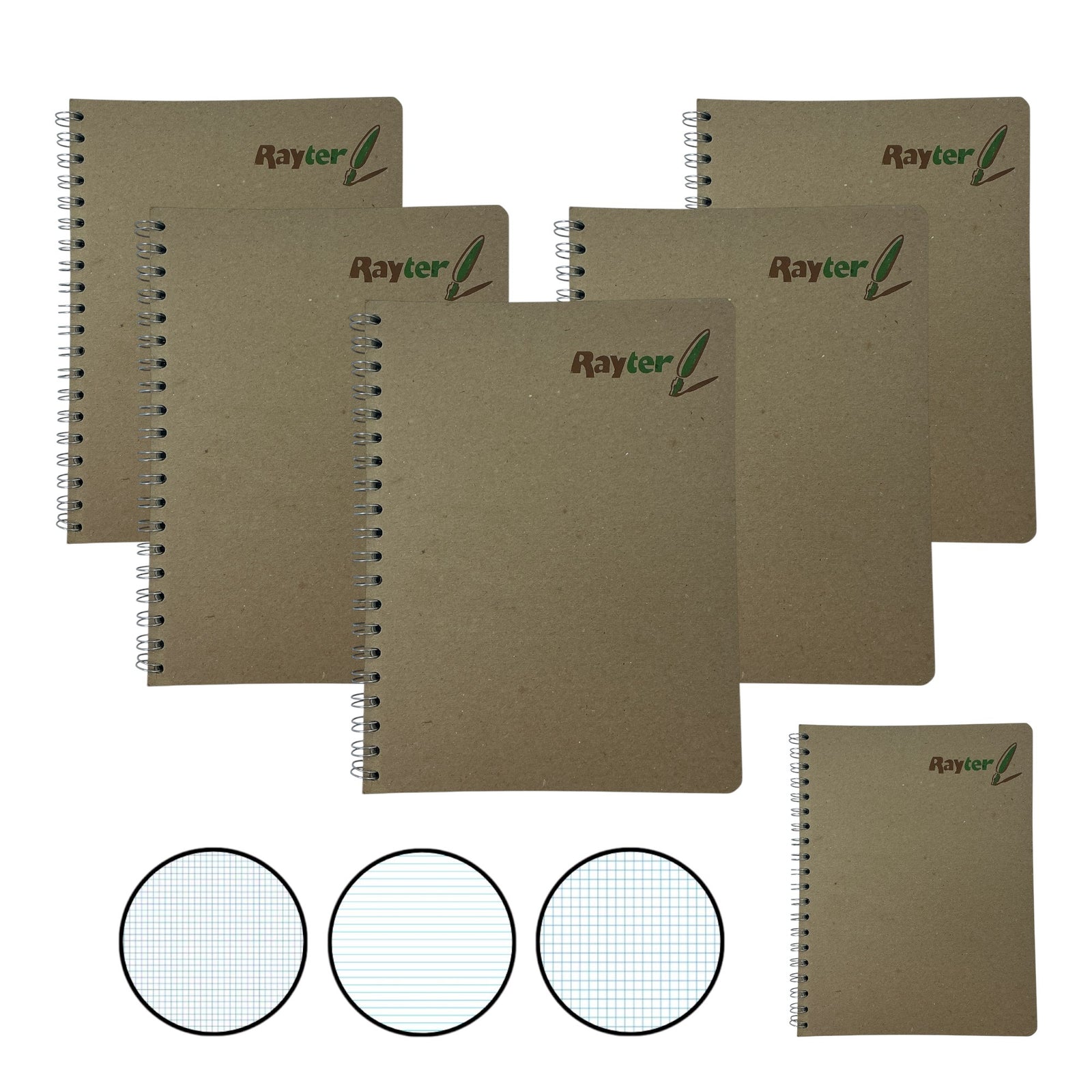 6 Pack Libretas Profesionales Ecológicas Rayter 100 Hojas Doble Aro Cuadro Chico, Grande y Raya